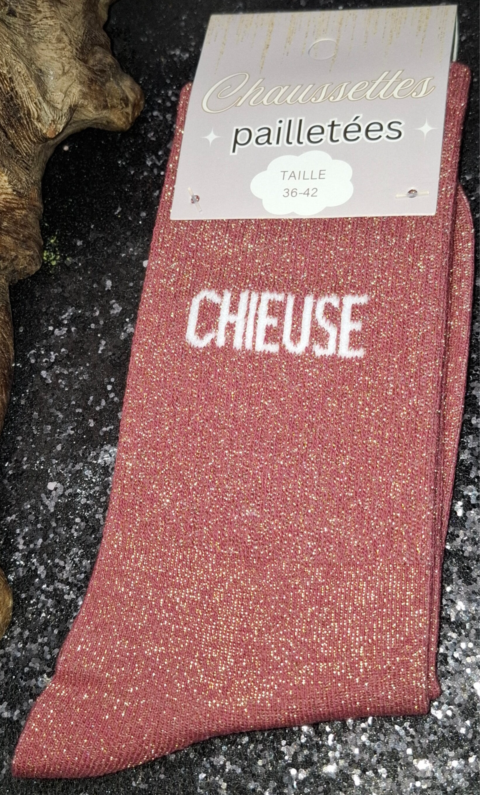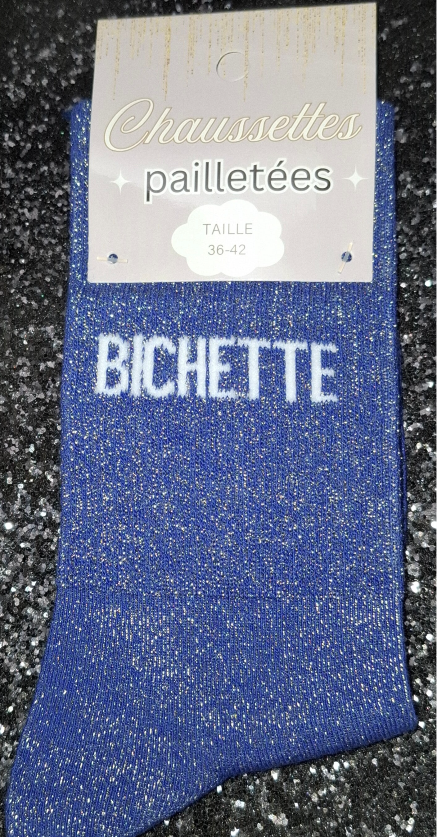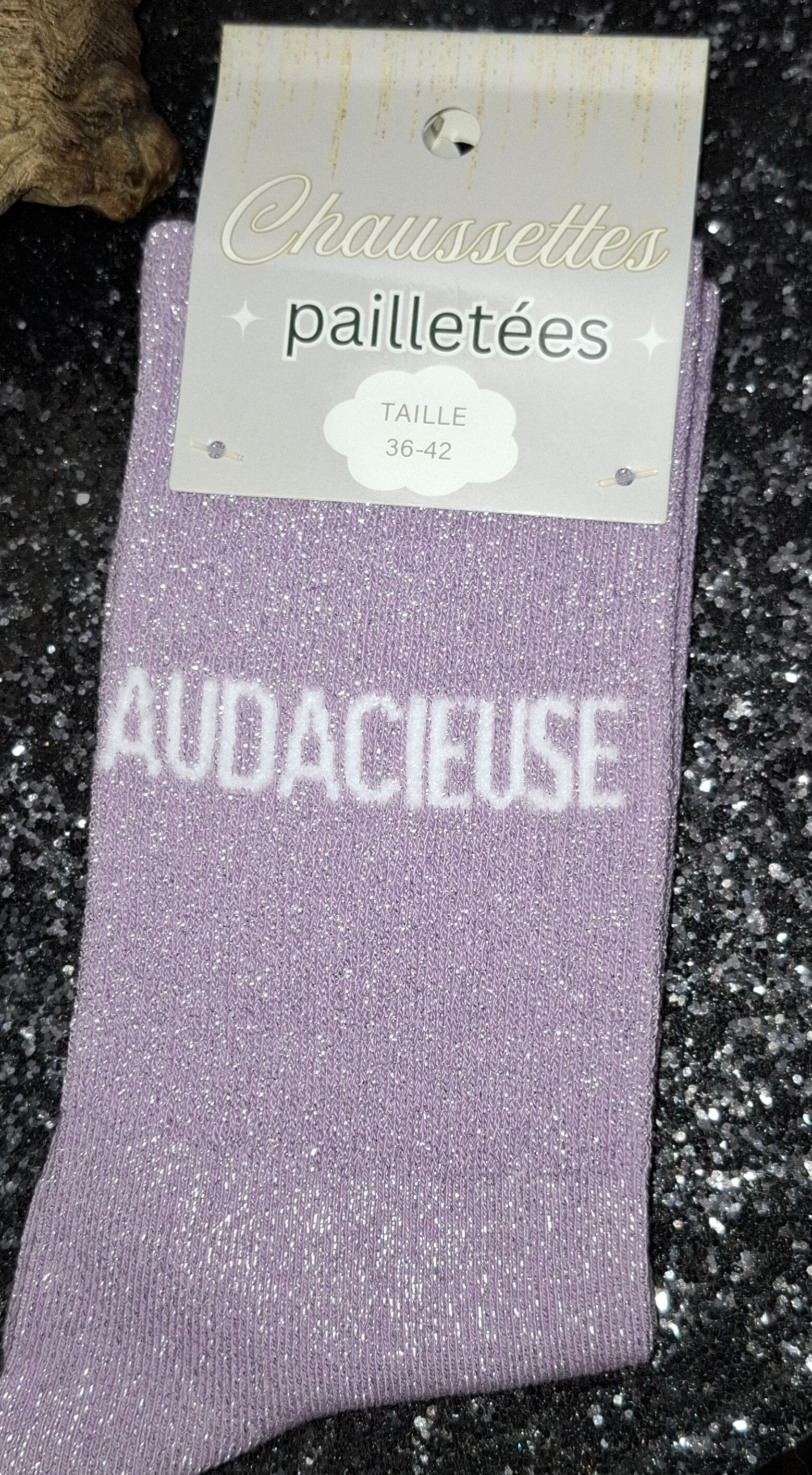 Chaussettes à paillettes avec un message